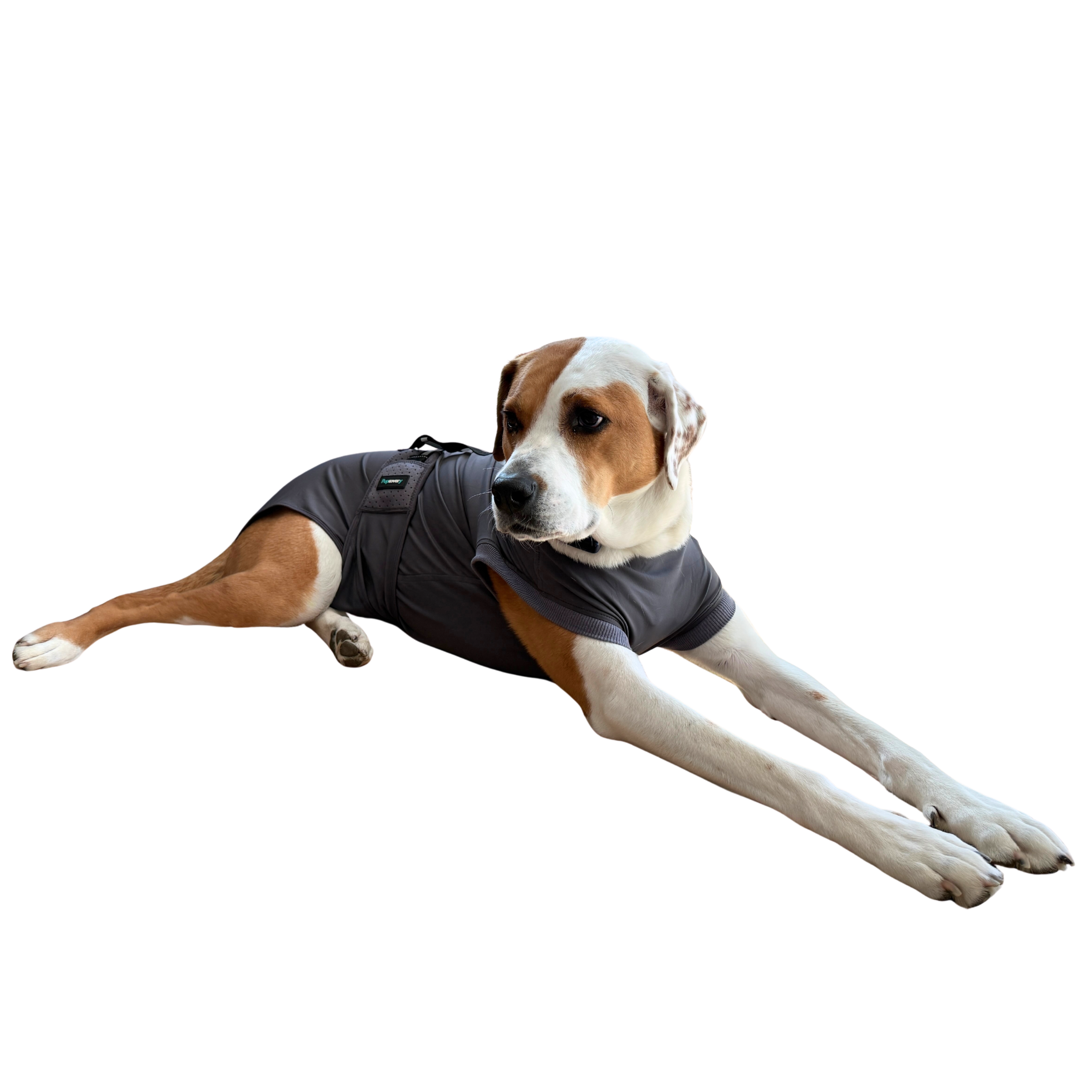 A tailored directional fit creates a natural calming swaddle, allowing full movement, while preventing post surgery anxiety.