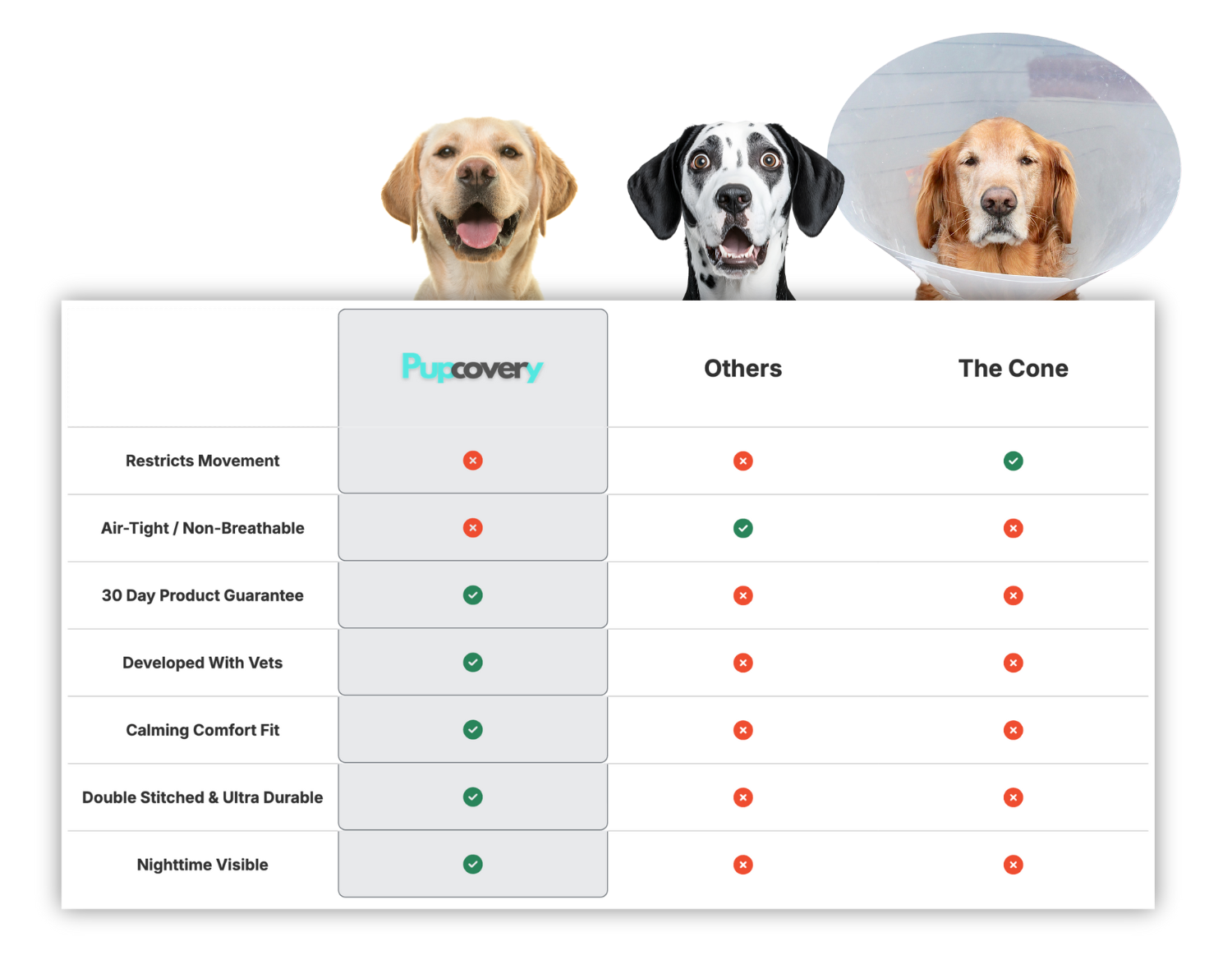 Pupcovery provides a gentle, wearable alternative. Designed for freedom, comfort, and faster healing, it keeps your dog protected without sacrificing their happiness, mobility, or connection with you.